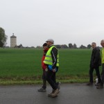 De watertoren te Gullegem, een baken bij vergezichten in het landschap, is ook vandaag voor ons kijktoren en richtpunt gedurende deze wandeling. Watertoren, regenjas en/of paraplu, beiden hebben niets met elkaar gemeen doch vandaag op deze druilerige natte herfstdag zien en voelen wij toch een associatie.