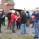 Doch wij gaan gewoon winterwandelen kriskras langs ongekende binnen wegeltjes en stappaden tot bij onze wintermobiel die ons -traditiegetrouw- steevast jaarlijks bevoorraad. Daar konden wij ons ook verwarmen aan de heerlijke warme wijn of warme choco! Of zelfs een appel jenever ging er bij sommigen vlot naar binnen … Maar nog niet helemaal uitgewaaid halverwege, mogelijks enkel een beetje ‘in de wind’, was het naar het einde toe onderweg soms wat modderlopen maar geen enkel van ons maakte een uitschuiver zoals bij het veldrijden.